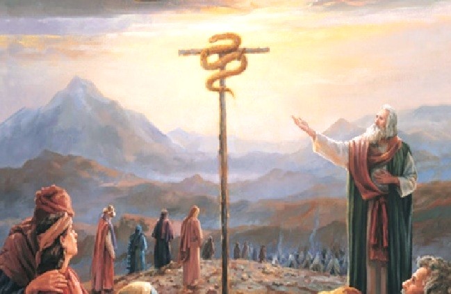 KJV John 3:14 “As Moses lifted up the serpent in the wilderness, even so must the Son of Man be lifted up.”
